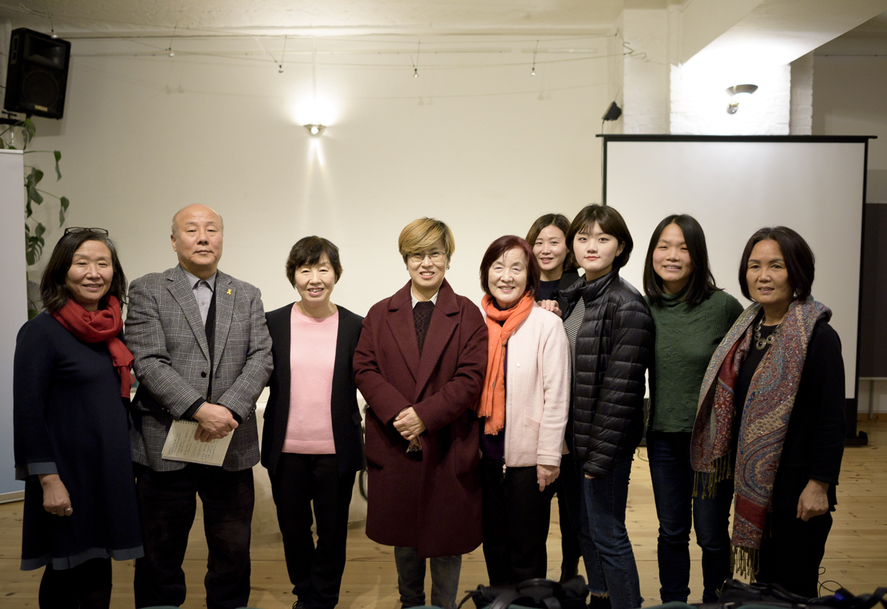 Die AG „Trostfrauen“ im Korea Verband setzt sich seit zwei Jahren für eine Annullierung der Vereinbarung und Neuverhandlungen zur Lösung des Problems ein. 2017 haben wir viel erreicht, dass die Thematik auch hier bekannter wird und von deutscher Seite eine Lösung der „Trostfrauen“-Frage eingefordert wird: Im Rahmen eines Besuchs der Überlebenden An Jeom-Soon stellte die koreanische Community in Wiesent bei Regensburg die erste Friedensstatue in Deutschland auf. Wir organsierten für Frau An und die Delegation aus Suwon eine Veranstaltung in Kooperation mit Han-In Gemeinde in der Heilandskirche und eine Demonstration zum internationalen Weltfrauentag. Bei unserer jährlichen Mahnwache zum Internationalen Gedenktag für die „Trostfrauen“ wurde mit der Performance „Lebende Statuen“ den Betroffenen aus 13 Ländern gedacht.