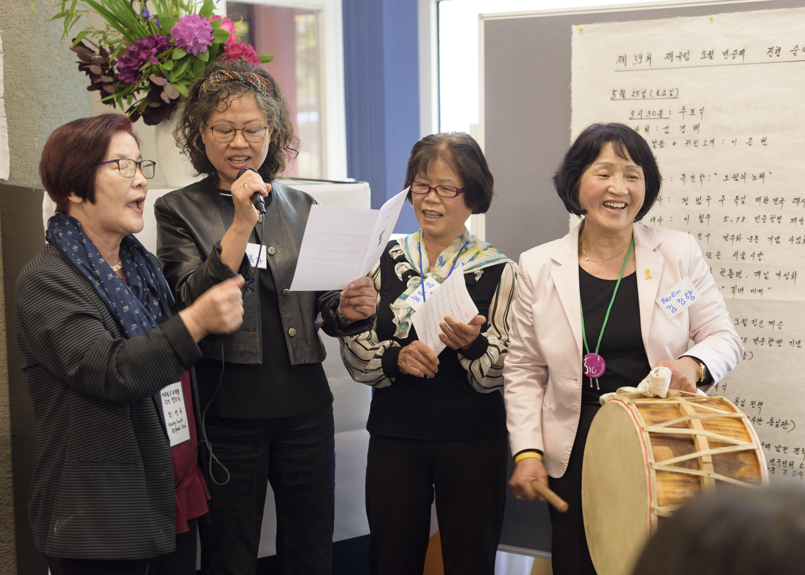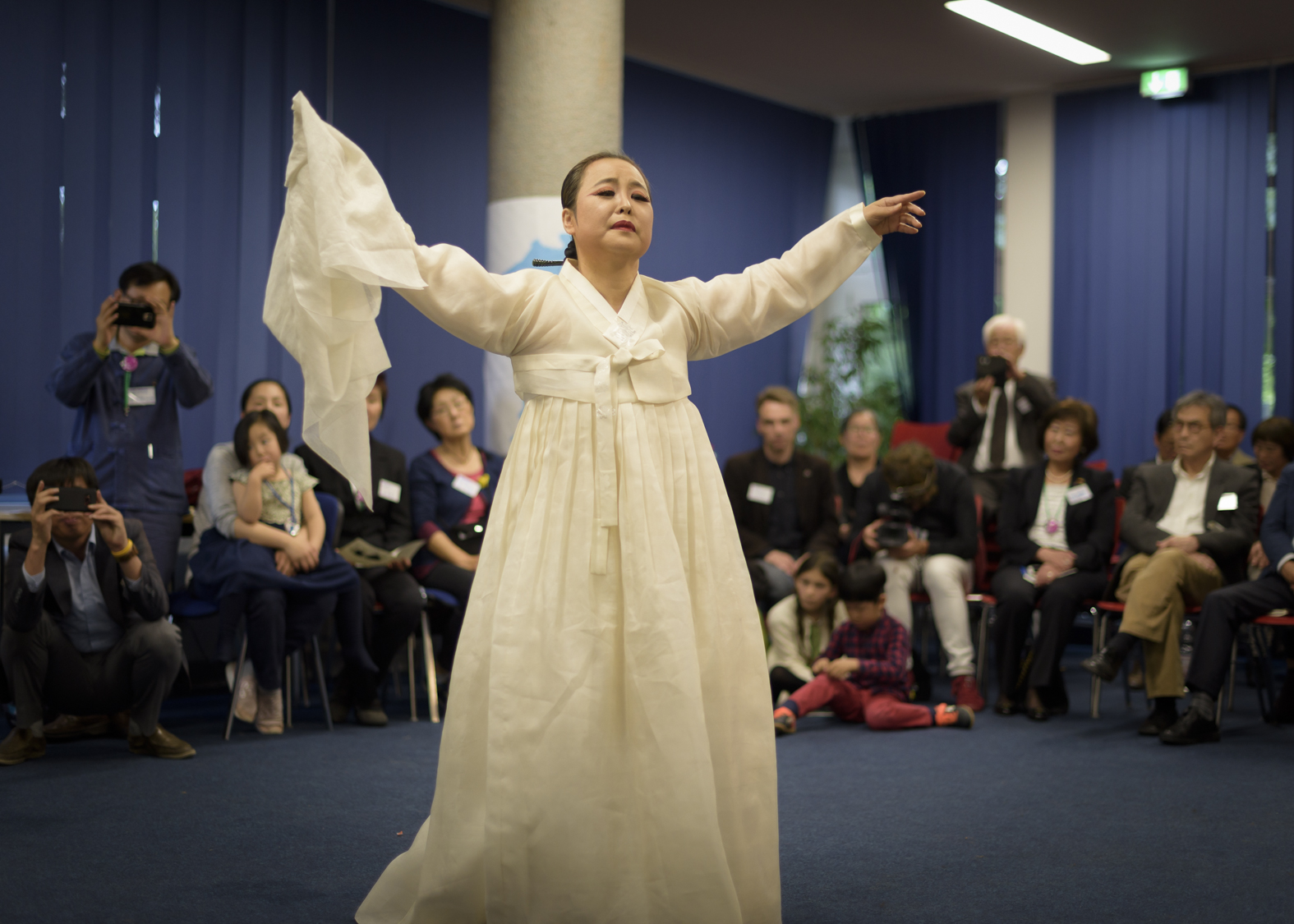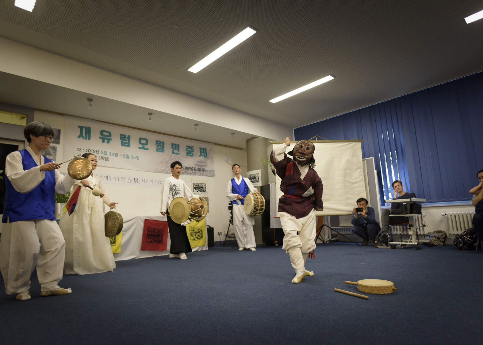 Nach der abschließenden Diskussion gab es noch einige eindrucksvoll vorgetragene Kulturbeiträge: Ein Theaterstück, dass Erinnerungen aus Gwangju und ihre stete Aktualität einfing, sowie traditionelle Tanz- und Trommelvorführungen, Salpuri und DoodulSori.