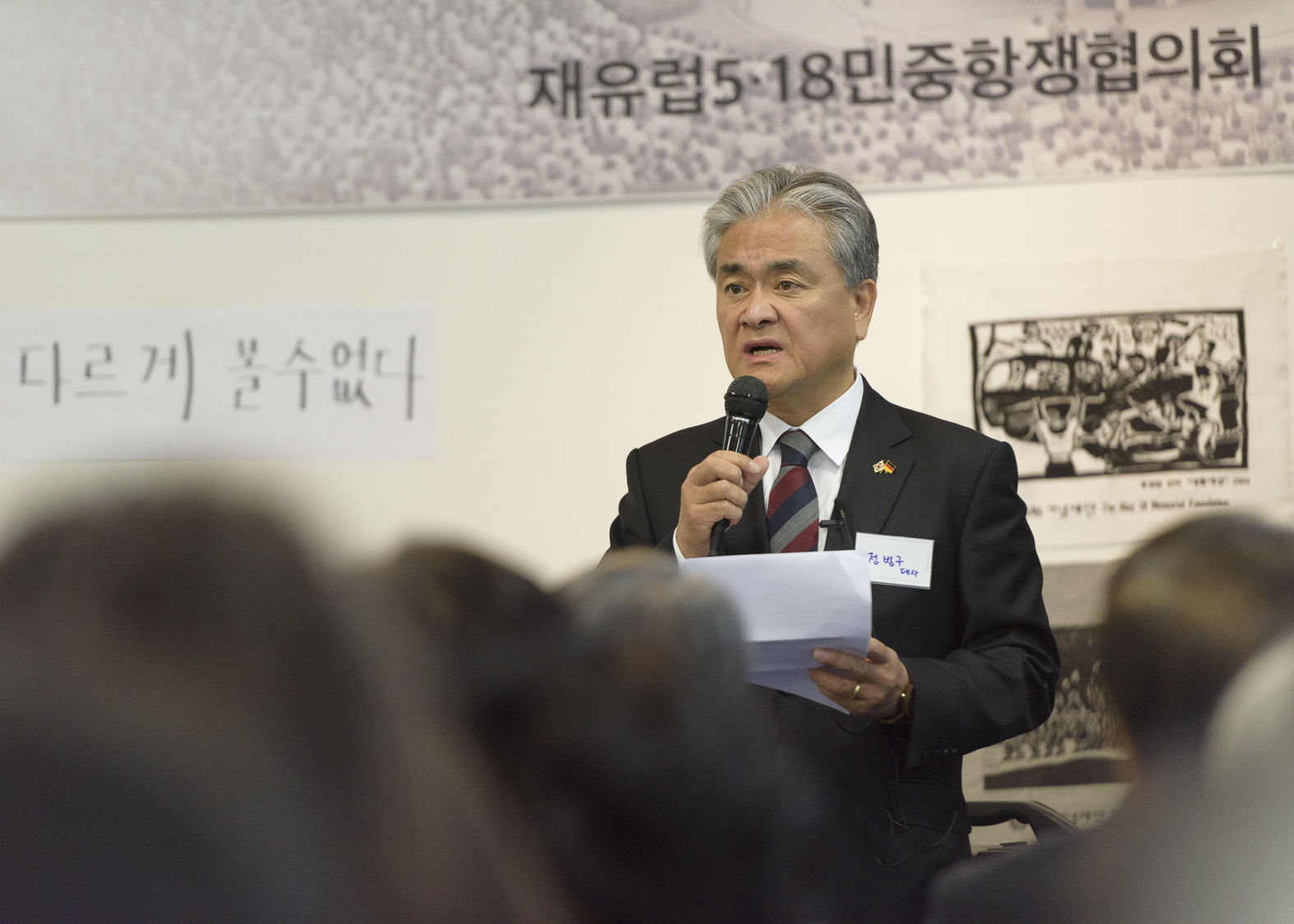 Dieser schlossen sich drei Vorträge zu den Wiedervereinigungs- und Friedensbestrebungen auf der koreanischen Halbinsel an. Herr Professor In Baek Wi betonte die Werte und die Verpflichtungen den Verstorbenen in Gwangju gegenüber, die für einen Einung eine elementare Rolle spielen. In Ho Kim, der Attaché des Wiedervereinigungsministeriums, umriß die Nordkorea-Politik der Jae In Moon Regierung mit all ihren Herausforderungen, wagte aber auch vorsichtig optimistische Prognosen.