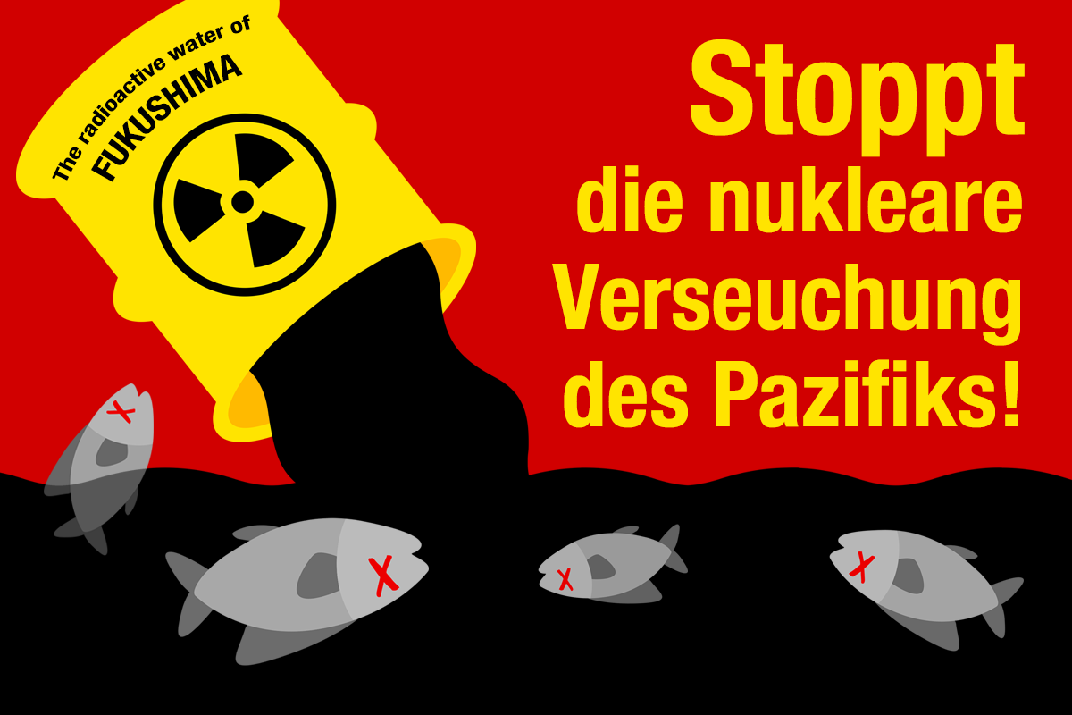 TEPCO und die japanische Regierung planen, etwa eine Million Liter radioaktiv kontaminiertes Abwasser aus Fukushima in den Pazifik abzulassen. Das wollen wir uns nicht bieten lassen. Als breites Bündnis von Umwelt-, Klima- und Menschenrechtsorganisationen demonstrieren wir am 8. 6. 2021, dem internationalen Tag der Ozeane, von 15 bis 17 Uhr, vor dem Brandenburger Tor.
