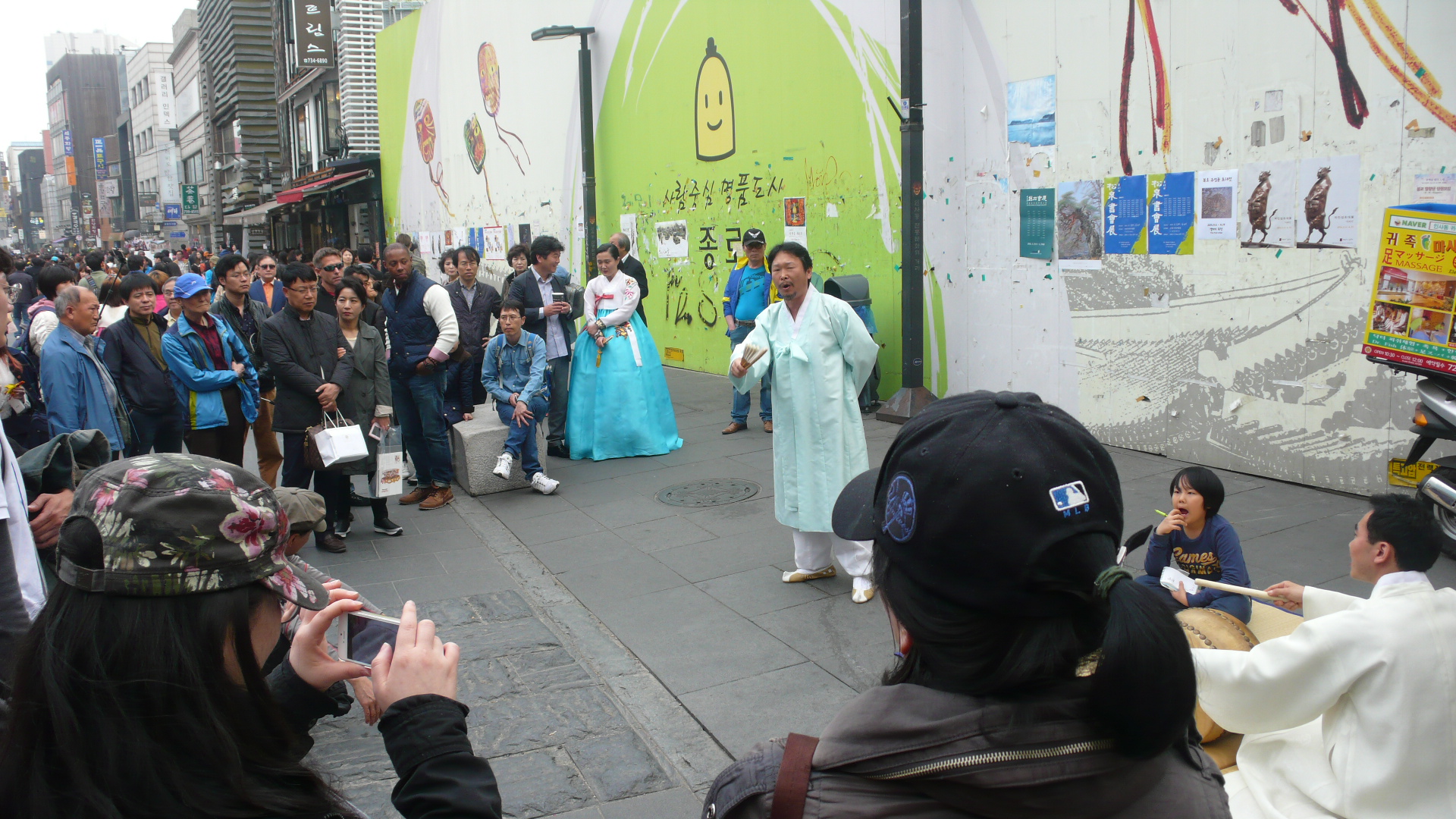 - Park Tae-o (Gesang) und Jo Sang-min (Trommel) beim „Straßen-Soripan“ in Insa-dong,